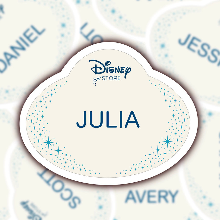 Personalize your own Disney Store Nametag Sticker with your Name! If you ever worked at the Disney Store or wanted to work there, you can bring the magic home with this fun Disney Store Badge sticker! Vinyl stickers go on your water bottle, laptop, locker, or any other smooth surface! Sticker is topped with laminate for protection and water resistance.